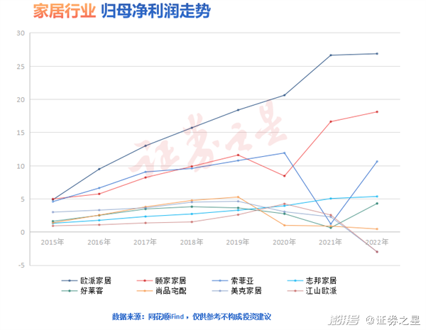 家居行业自2015年开始便进入了分化的趋势,行业始终属于三强争霸——欧派家居、顾家家居、索菲亚的过程,然而2021年索菲亚由于计提坏账的原因落后了,至此行业进入了两超多强的行业格局。