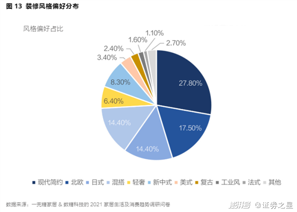 从消费者装修动机来看,它们分别是:审美变化(17%)、旧房翻新(14%)、家庭成员变动需改动房屋(10%)、疫情后想要改善居住环境(7%)以及出现收纳难题(3%)等存量房的改善型装修需求逐步释放出来,合计占到了51%,这是行业新的增长机会。