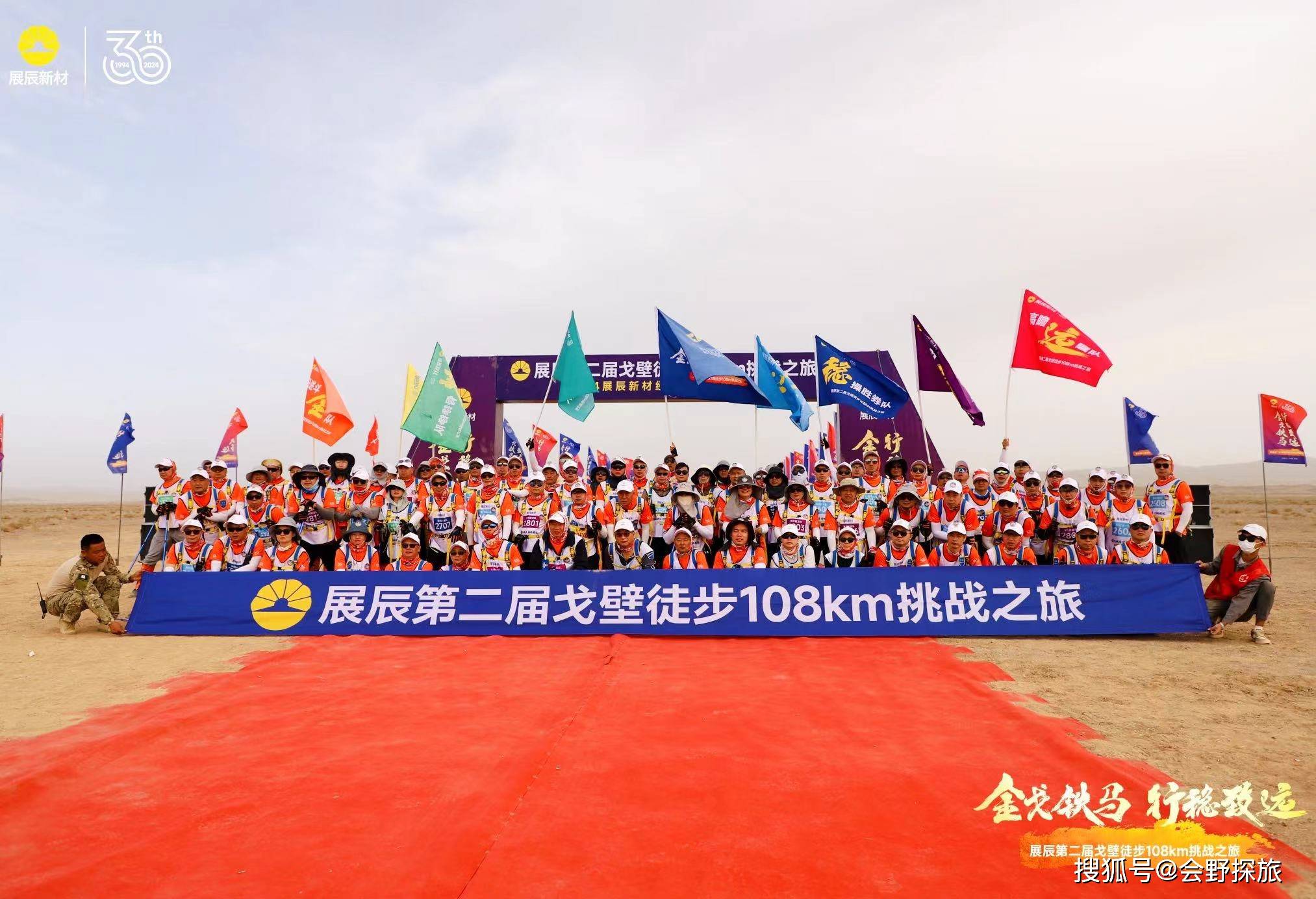 2023年9月,展辰成功举办了首届戈壁徒步108km挑战赛,近百名展辰精英参加赛事。2024年,适逢展辰集团成立30周年,在众所期盼中迎来了第二届戈壁108km挑战赛。