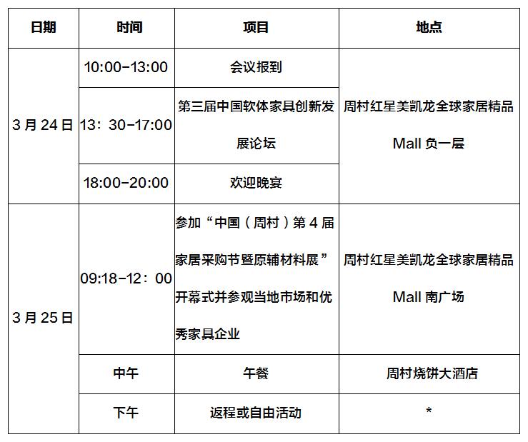 3. 为便于提前做好会务安排,请参会人员于3月10日前将回执表格回传至山东省家具协会:0531-86073610,或发至邮箱:sdjx001@vip.sina.com.
