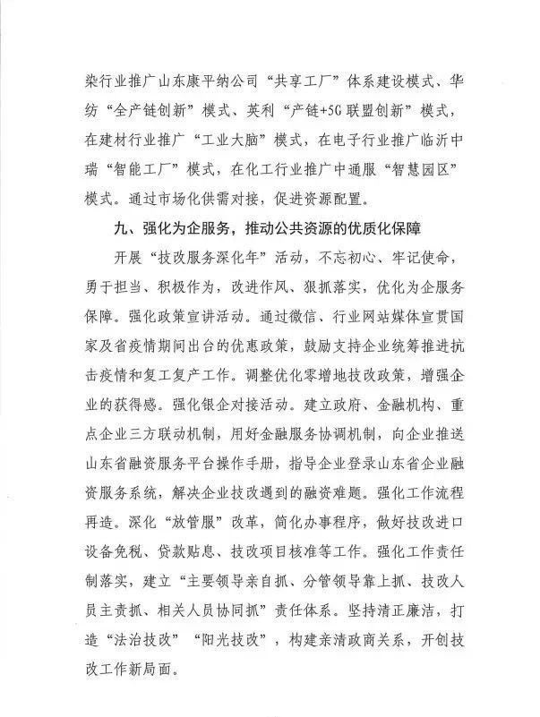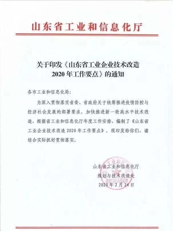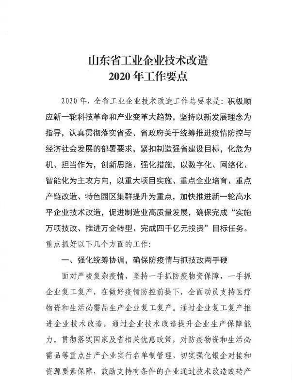 关于印发《山东省工业企业技术改造2020年工作要点》的通知