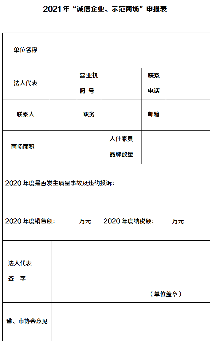 关于开展2021年家具行业“诚信企业、示范商场”推荐活动的通知