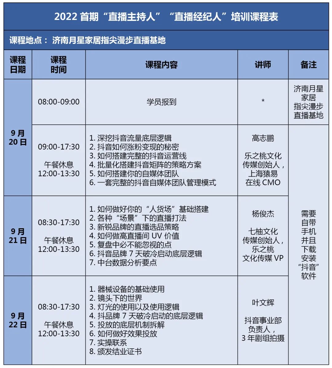 欢迎大家报名参加由山东省家具协会联合中天恒鑫城市发展咨询(天津)有限公司共同举办的2022首期电商“直播主持人”“直播经纪人”培训课程。