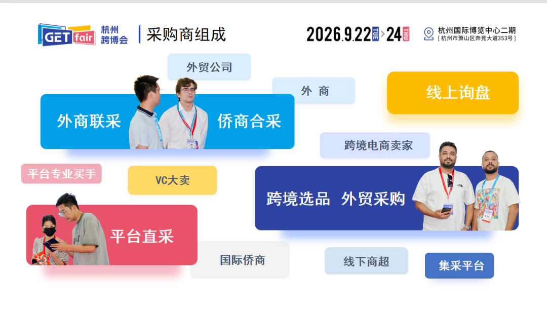 展会汇聚多类型优质采购商资源,包含外贸公司、外商、跨境电商卖家、平台专业买手、VC大卖、国际侨商,同时支持线上询盘、外商联采、侨商合采、平台直采、集采平台合作、线下商超对接等多种合作形式。