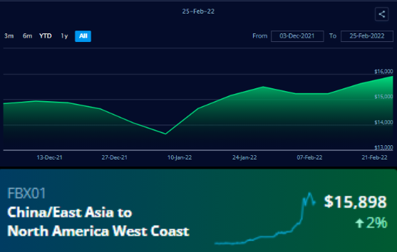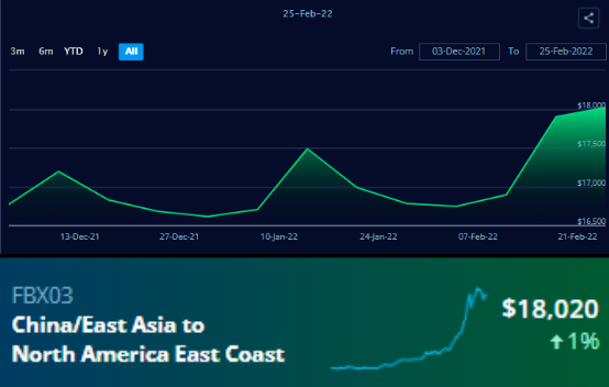 事实上,跨太平洋航线运价开始上涨;上海至美西WCI和FBX指数分别上涨3%和2%;上海至美东WCI和FBX指数都上涨1%。
