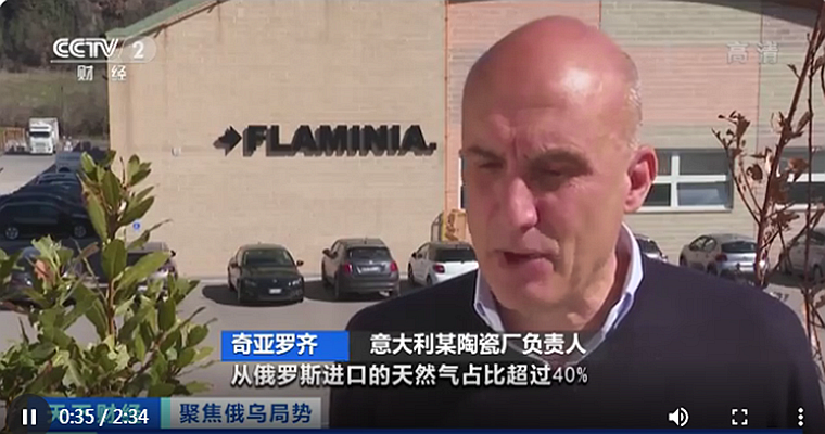 意大利某陶瓷厂负责人奇亚罗齐称:毫无疑问,对意大利来说,从俄罗斯进口的天然气占比超40%,如果俄乌局势恶化,意大利就会面临天然气供应中断的风险。意大利的天然气供应商也会考虑调整供应或减少供应,这种情况将导致非常严重的后果。