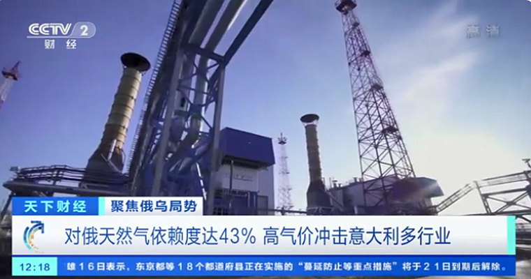据悉,过去十年,意大利对俄罗斯天然气的依赖度从27%猛增到43%,意大利九成天然气需要从国外进口。