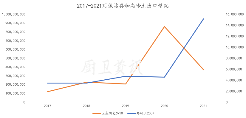 此前,俄白粘土、高岭土等原材料超过60%从乌克兰进口,并据此建立了成熟的产业链配套。根据世界贸易数据显示,2020年俄总进口高岭土超过35万吨,其中从乌进口超过32万吨,占其总进口比重达到67.4%。而从中国进口占比仅为2.8%。