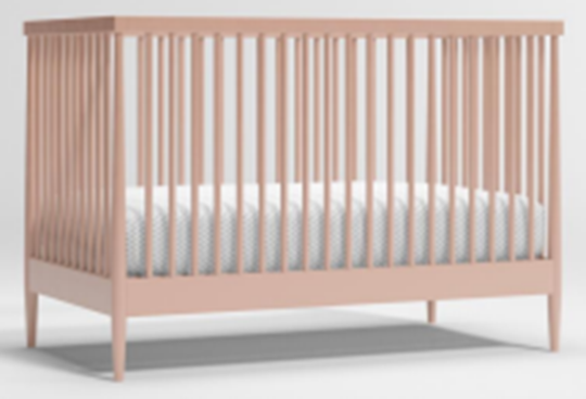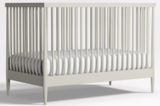 此次召回Hampshire婴儿床有多种颜色,包括胭脂红、橄榄色、白色、灰色和自然棕色。这些婴儿床的SKU编号为246898、534758、534987、535020 和 405394,床垫支撑板上的标签上标有“Crate & Barrel”品牌。