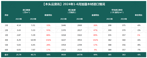 进一步分析月度进口数据,今年1至6月,中国对加蓬木材的月度进口量持续攀升,其中4月份更是实现了156%的大幅增长,单月进口量达到10.9万立方米。相对来说,6月份的进口增速有所回落,但仍保持了17%的同比增长,显示出市场需求的持续旺盛。