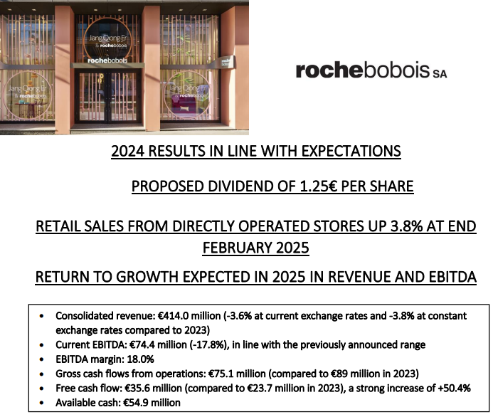 3月31日,罗奇堡(Roche Bobois )公布截至2024年12月31日的年度业绩。在家居市场环境较为疲软,且2023年基数较高(创纪录年份)的情况下,罗奇堡呈现符合预期的稳健年度业绩。