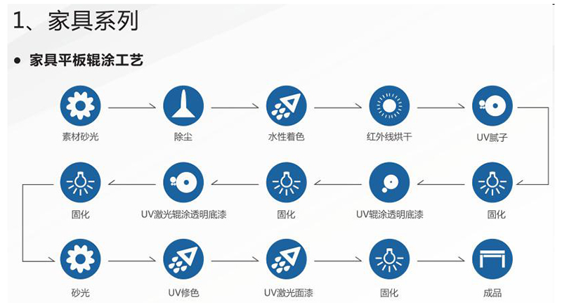 随着国家提倡的可持续发展,环保被提上了更高的国家政策层面,在这个过程中作为低附加值高污染的家具及木门制造行业冲击是最大的,传统含有挥发性有机物比较多的聚酯类油漆、硝基漆将不能在使用,自动化的涂装方式将大大减少对人工的依赖,最大化的减少企业用工成本和职业病的危害,集中化的油漆涂装及废气处理装置设备的添加,将会使我们的环境及企业的竞争力得到极大的提高。为了响应环保的政策,采用UV或者水性漆作为后期的施工油漆类型成为了必然选择,针对以上油漆类型家具生产企业该上哪一些设备?该怎么上?什么样的设备适合自己企业,今天我们一起来探讨一下这些问题。