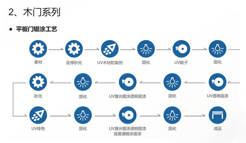 5.光固化的方式现目前市面上只有两种,一是变压器式的汞灯、镓灯(分变压器和电子电源两种结构原理),二是LED冷光源UV固化,这两种的区别在于耗电量的不同及针对的油漆类型不同,现万家园和伯艺木门、龙马木业都有在用这两种光源;LED光源的寿命和能耗是它的最大优势(LED光源寿命是20000小时,传统的汞灯只有800-1000小时;耗电量LED是传统变压器式的1/6,一年即可节省15万电费);还有一个优势即是LED不产生臭氧及高温,所以可以固化一些不耐高温的基材使用UV油漆,比如PVC、纸张、塑料等材质,这种方式是以后水性UV及UV涂装的发展方向;