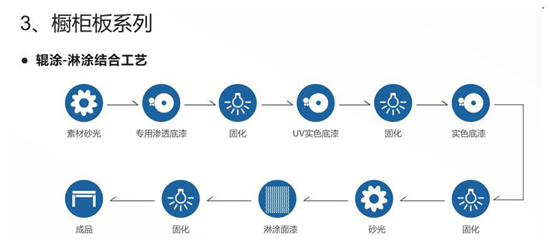 底漆:滚涂/淋涂+真空滚/喷边+往覆式喷涂