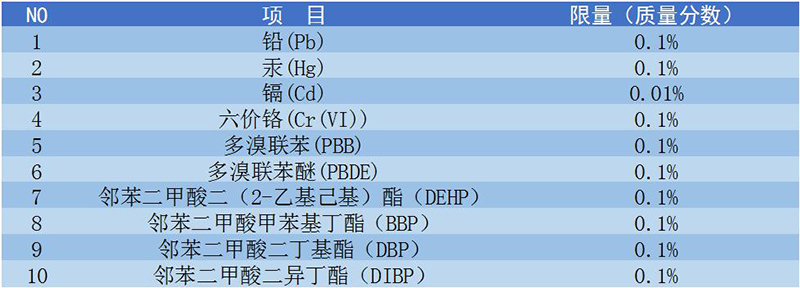 以上是国内的标准,但达不到出口要求。欧盟的《RoHS2.0修订指令2015/863》要求: