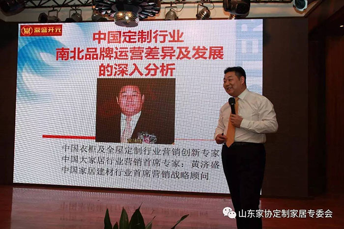 中国衣柜及全屋定制行业营销创新专家黄济盛老师更是用丰富的营销经验加实践案例生动的剖析了南北方企业之间的差异,新创客模式的讲解更是将传统终点营销模式进行了颠覆。