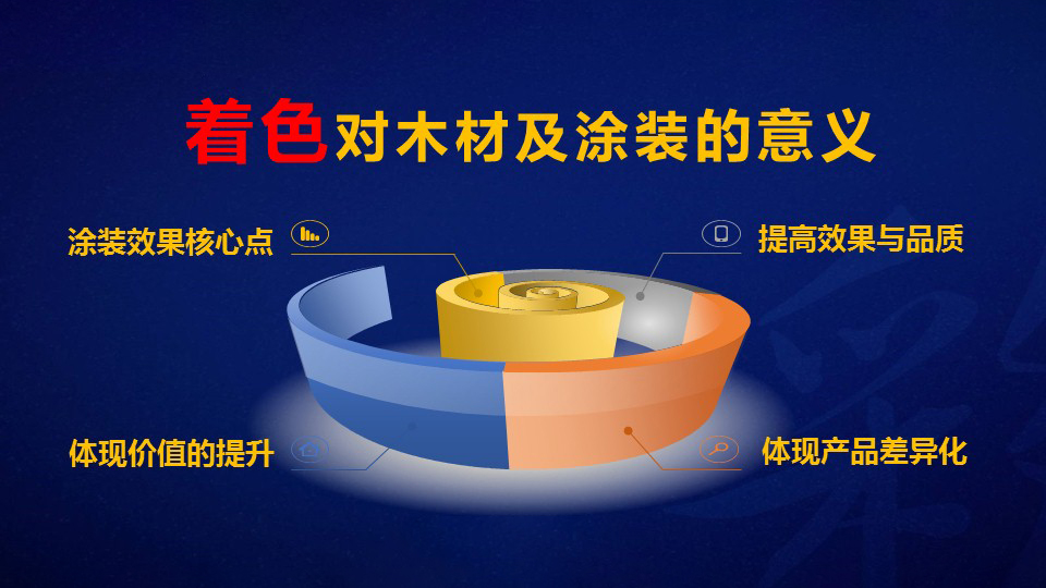 涂装效果的核心。决定表面的涂装效果的因素除了人为问题之外,比如说色彩设计,最主要的就是木材,好的材质一定有好的血液,好的色彩呈现出来。色彩和木材怎么样来形成二者合一,把他们理想化的一面展现了出来,就需要好的色彩涂装设计来解决。