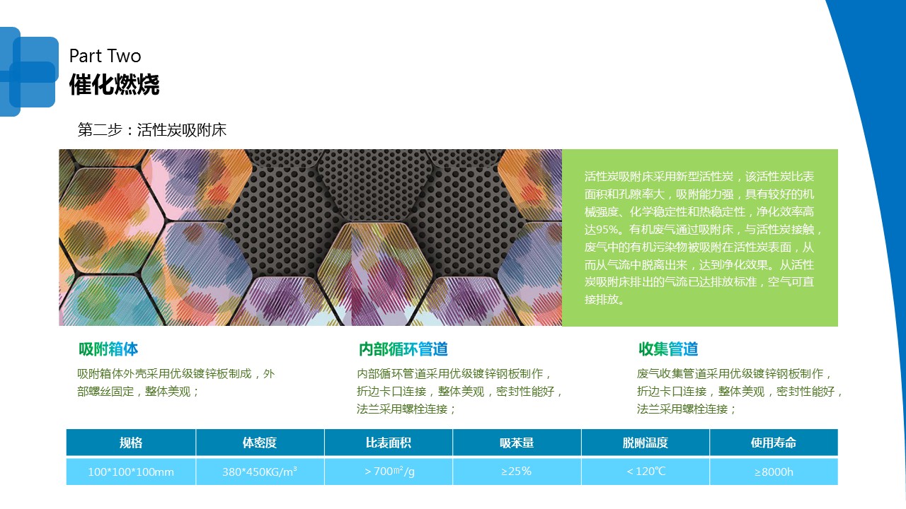 第一是催化剂对VOC分子的吸附,提高了反应物的浓度,第二是催化氧化阶段降低反应的活化能,提高了反应速率。借助催化剂可使有机废气在较低的起燃温度下,发生无氧燃烧,分解成CO2和H2O放出大量的热,与直接燃烧相比,具有起燃温度低,能耗小的特点,某些情况下达到起燃温度后无需外界供热,反应温度在250-400°C。