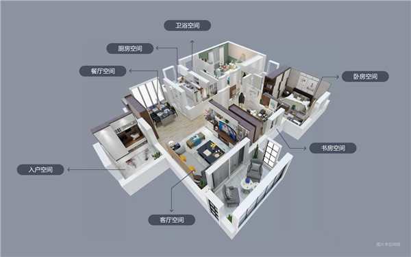 家居的“基本功能空间”包括门厅空间、餐厅空间、厨房空间、卫浴空间、客厅空间、卧室空间和书房空间等。