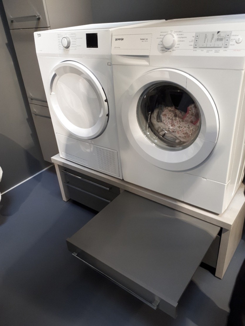 案例8:洗衣机柜叠衣板。洗衣机柜底设计一块可拉伸的叠衣板,为用户提供了很大的便利,不使用的时候也可以再推进去节省空间。而这种定位单元还可以用在餐边柜,收纳放置小型电器。