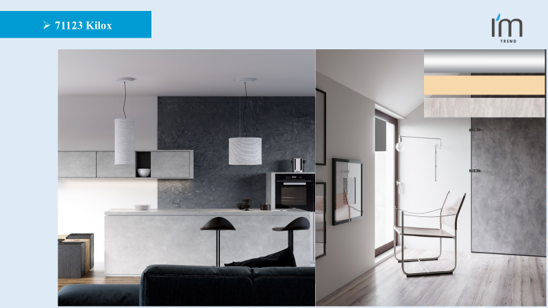 Cement。第二款设计是实纹设计,它传递的感觉比较粗犷,有工业风的感觉,它的应用和Kilox是差不多,是作为墙体的设计。在颜色搭配上,这款设计并没有很大的局限性,既可以搭配经典的灰白黑,同时也可以用生动的彩色系与它搭配。