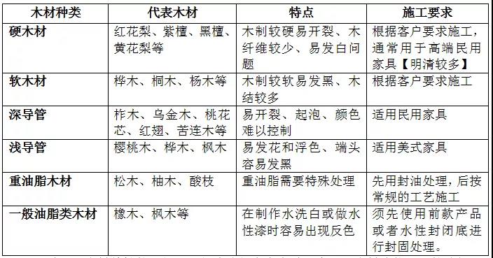 通过对于木材特性的了解可以解决我们在生产过程中对于木材涂装工艺的选择和设计,比如,每一个木材的纹理是否清晰、导管的深浅以及含水率都会影响着色材料的选择,工厂的管理水平也是设计工艺是否符合现场管理的重要因素,其中包括硬件、施工人员的技术水平和管理水平。所以,根据木材的特性选择合适的材料,才能达到我们所需要的效果。