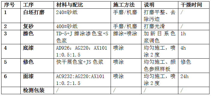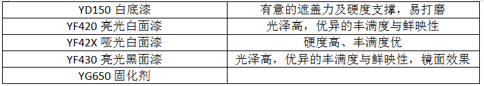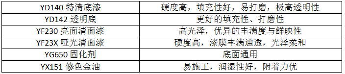 JA500-XX/JA600-XX漆膜薄透,光泽稳定、透明度极好,硬度上升快,气味低。高薄透体系如果要做出好的效果,最重要的环节就是打磨,底漆在打磨之后要用600#砂纸清除粗砂纸产生的砂痕印,以达到最好的效果。配套固化剂选用JB500/JB600,施工配比为1:0.5。