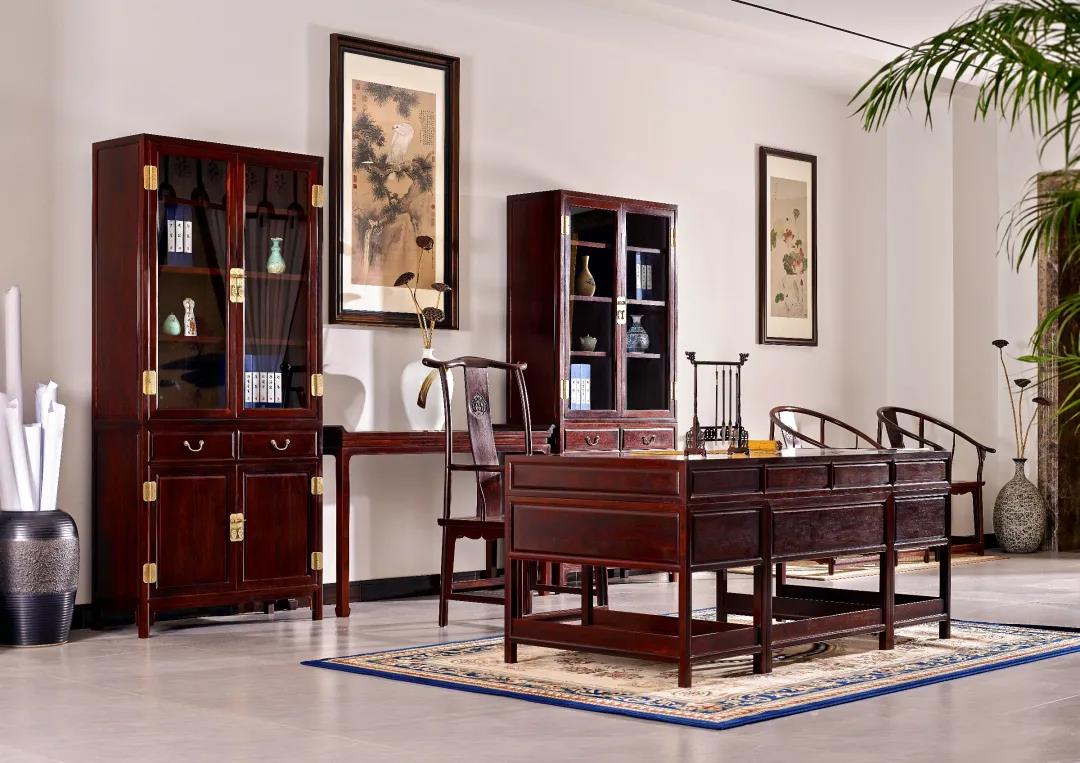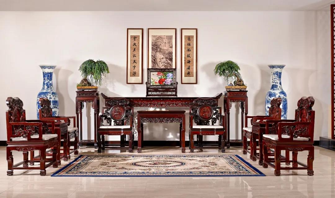 2. 工艺考究:红木家具重在工艺,要求极为苛刻,把准器形、尺寸、结构、比例、雕刻图案等,惜料不惜工,榫卯工艺,不差一毫,刮磨处理,精益求精。现在家具的正常公差可以用“丝”(1丝=0.01毫米)来计量,可谓丝丝入扣,浑然天成。