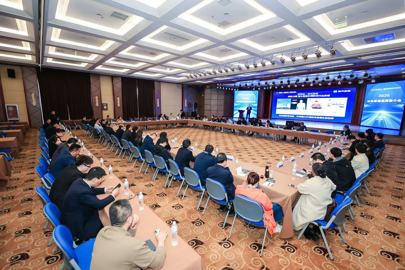 3月22日下午,2025山东家具品牌推介会在山东蓝天家具有限公司成功举行。济南银座家居中心店、济南银座家居北园店、青岛海博家居、济南黄台环球家居、潍坊广丰家居、邹平中意国际家居、济南金牛建材、红星美凯龙(周村店)、盛世家居等家居卖场代表,蓝天家居、凤阳家居、鑫尼斯家具、北亚智能家居、沃德宜家、砚夕家居、一品鹏达、福兴韵、鲁班金坊、福王家居、金富通、康林家居、素凡家具、鑫阳阳家具、嘉月家居、银座办公、艾歌伦水性漆、搏士磨具、新星面料、岱桥新材料、三维家等生产企业、供应链企业代表以及省家具研究所、齐鲁电视台、乌吉哈贸易咨询等代表60余人参加会议,山东省家具协会执行会长韩庆生、山东省家具协会副会长/山东蓝天家具有限公司总经理于浩、山东省家具协会副会长单位/菏泽诚信家具集团有限公司总经理郑子林、周村区家具产业联合会秘书长王毅出席会议,会议由山东省家具协会秘书长王腾主持。