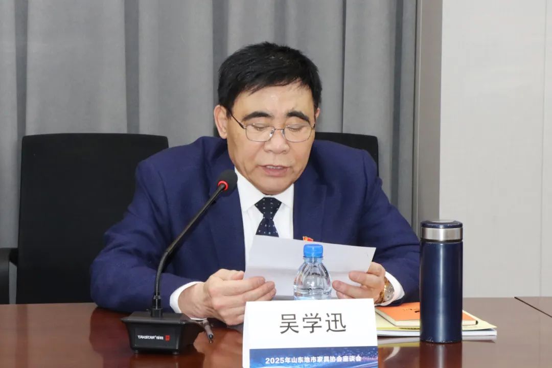 座谈会上,淄博周村区家具产业联合会会长吴学迅作为东道主首先致辞,他表示,周村作为“中国软体家具产业基地”,产业底蕴深厚、链条完整,家居采购节已成功举办九届,离不开各地市协会支持。此次座谈会旨在搭建交流合作平台,探讨产业发展之路,面对行业机遇与挑战,周村区家具联合会将发挥优势为企业提供服务支持,期待与各地市家协深化合作,共同推动山东家具产业高质量发展。