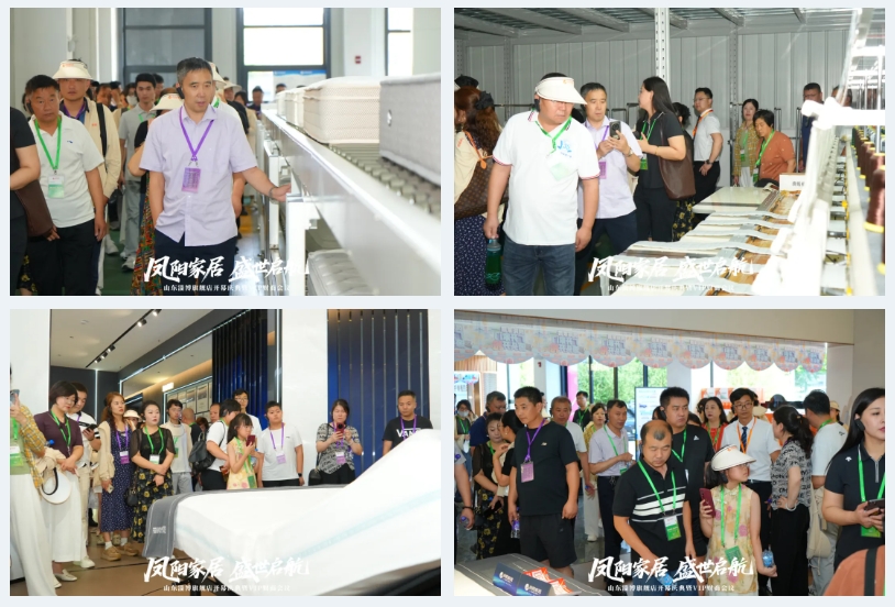 随后,众人步入凤阳家居工厂展厅。全新系列产品琳琅满目,现场摩肩接踵,或驻足品鉴,亲身感受匠心质感;或俯身探究,细察材质精妙,沉浸于凤阳营造的家居艺术之境。