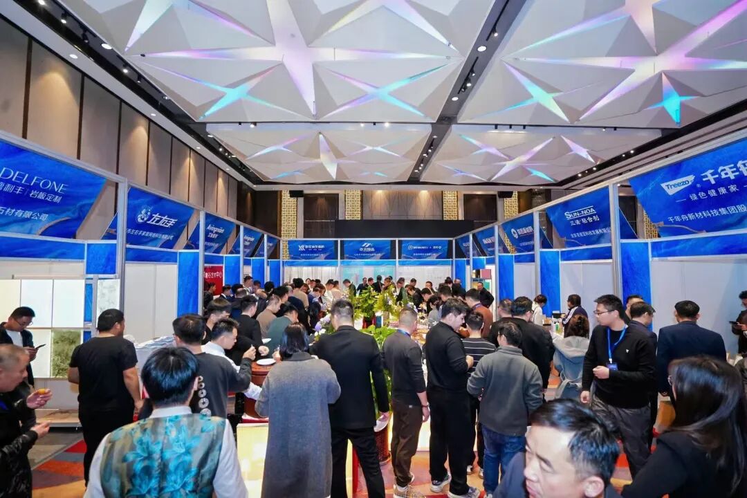 为促进企业技术升级,本届会议设置展示区,展辰新材料集团股份有限公司,千年舟新材科技集团股份有限公司,百隆家具配件(上海)有限公司青岛分公司,高密荣晟复合材料有限公司,山东晟昌新材料有限公司,广东泰强新材料科技有限公司,山东曼丽建材集团有限公司,山东德铭石材有限公司,山东亦木装饰材料有限公司,青岛问峰实业有限公司,山东千山木业集团有限公司,青岛彗诚胶黏剂有限公司,深圳市左右手家居网络科技有限公司,新星床垫面料有限公司,临沂康得祥新材料有限公司等多家产业链上下游企业进行了新材料、新技术、新工艺、新品牌展示。参会嘉宾在自由交流中增进合作意向,现场氛围热烈。