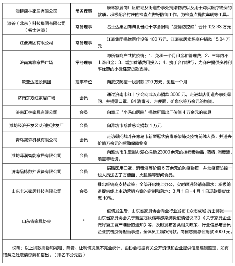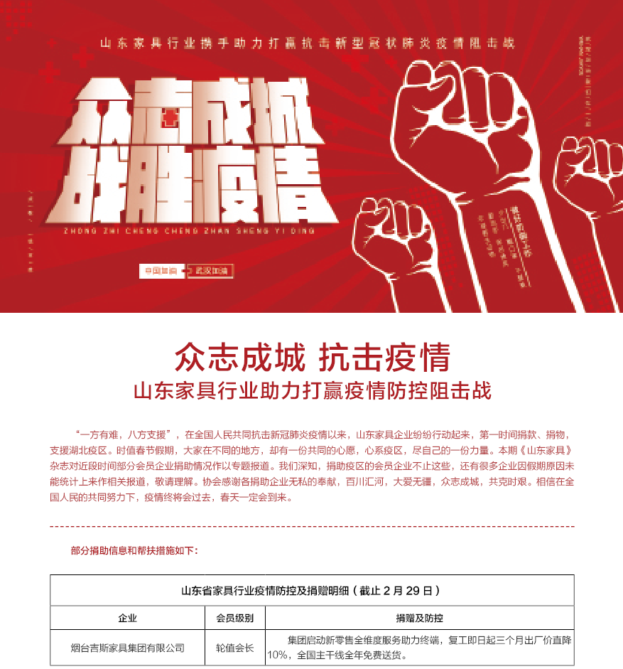 众志成城 抗击疫情 山东家具行业助力打赢疫情防控阻击战