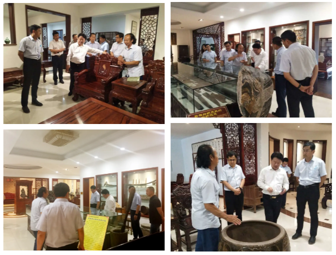 6月29日,山东省工业和信息化厅二级巡视员张忠军、省轻工联社党组成员、副主任李修德,淄博陶琉轻纺发展中心主任赵鹏、省工艺美术协会会长袁敏等一行赴“中国古典红木家具之乡”——淄川区西河镇、济南钢城区山东巧夺天工家具有限公司考察指导工作,山东省家具协会副会长/秘书长韩庆生陪同考察。