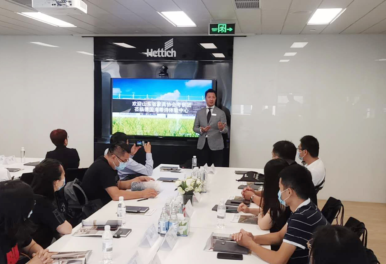 9月9日,山东省家具协会组织山东鑫迪家居装饰有限公司、东宇鸿翔新材料科技有限公司、山东南华家具有限公司、济南信和家具有限公司、济南好乐家住宅设施有限公司、山东宜和宜美家居科技有限公司、济南优再社家具制造有限公司、济南依诺家居有限公司、济南沃根家居有限公司等十余家企业代表前往德国海蒂诗五金上海体验中心展厅参观考察,山东省家具协会执行会长牛广霞、副会长/秘书长韩庆生一同带队,海蒂诗五金上海有限公司华东华北区大区销售经理陈煊骅、品牌及渠道经理吴佳珅、技术部经理叶小青、华中区域销售经理孙首萌陪同参观并与考察团代表就全屋五金设计问题分享交流。