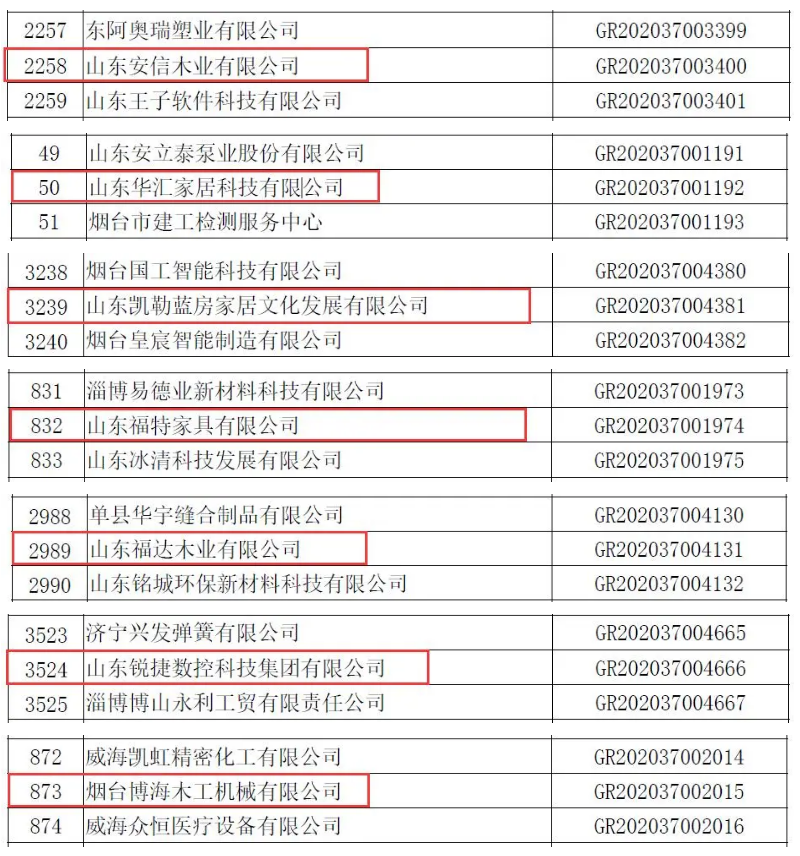 近日,全国高新企业认定管理工作领导小组办公室发布《山东省2020年第二批高新技术企业名单》,山东安信木业有限公司、山东华汇家居科技有限公司、山东凯勒蓝房家居文化发展有限公司、山东福特家具有限公司、山东福达木业有限公司、山东锐捷数控科技集团有限公司、烟台博海木工机械有限公司等多家家具及产业链企业获评山东省高新技术企业。