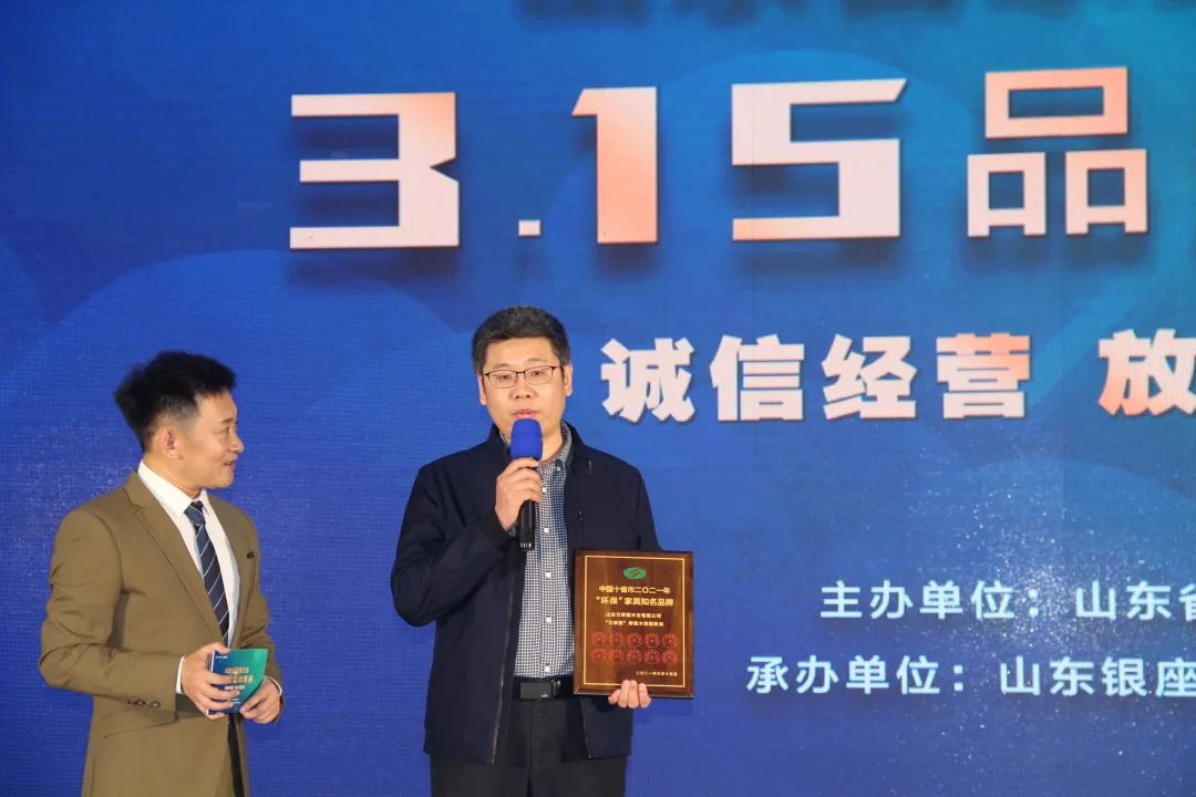 (山东省家具协会轮值会长/山东银座家居有限公司董事长张庆胜为“环保”家具知名品牌获奖者授牌)