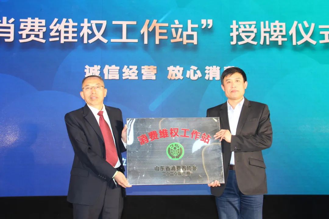 山东省消费者协会秘书长尹强民为山东省家具协会颁发“消费维权工作站”牌匾,山东省家具协会作为山东省家具行业的消费维权工作站,将进一步为维护家具消费者的合法权益贡献力量。