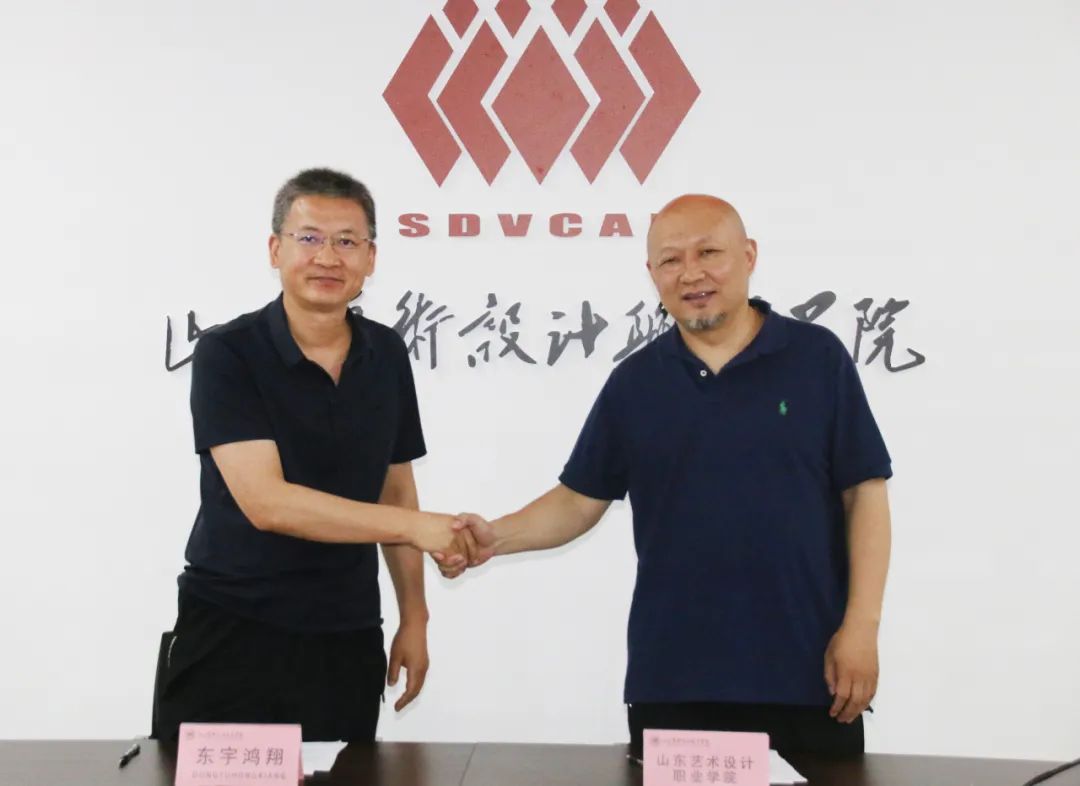 会上,山东艺术设计职业学院校长聂鸿立为5位客座教授授予聘书。山东艺术设计职业学院与东宇鸿翔新材料科技有限公司举行签约仪式。