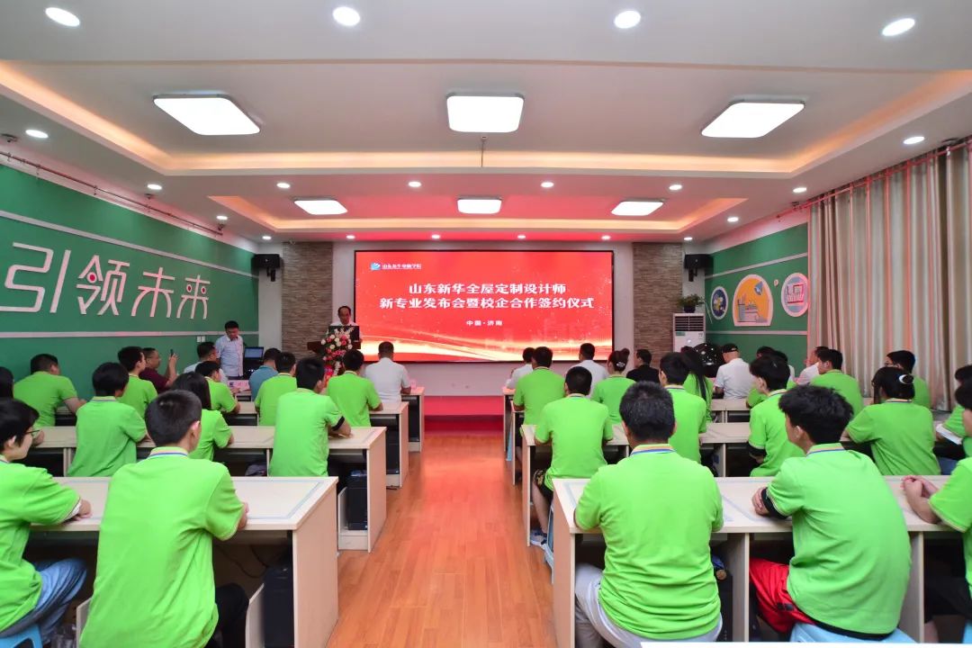 7月14日,山东新华全屋定制设计师新专业发布会暨校企合作签约仪式在学院二楼大机房隆重举行。山东新华电脑学院教学负责人范树明、银座家居秦晓龙、山东省家具协会副秘书长陈娟、简平直采信息科技董事长蔡兴磊、二四快装经理侯杰、山东瀚华臻品文化传媒有限公司白增朝、景致工坊家具制造有限公司徐国庆、众博教育综合部高军、罗森海姆整装设计专业负责人薛克、山东新华电脑学院西校区负责人武保鹏、创就业指导中心负责人侯海涛等学院、协会、企业领导出席了此次发布会,和近百名学子共同见证这一重要时刻。