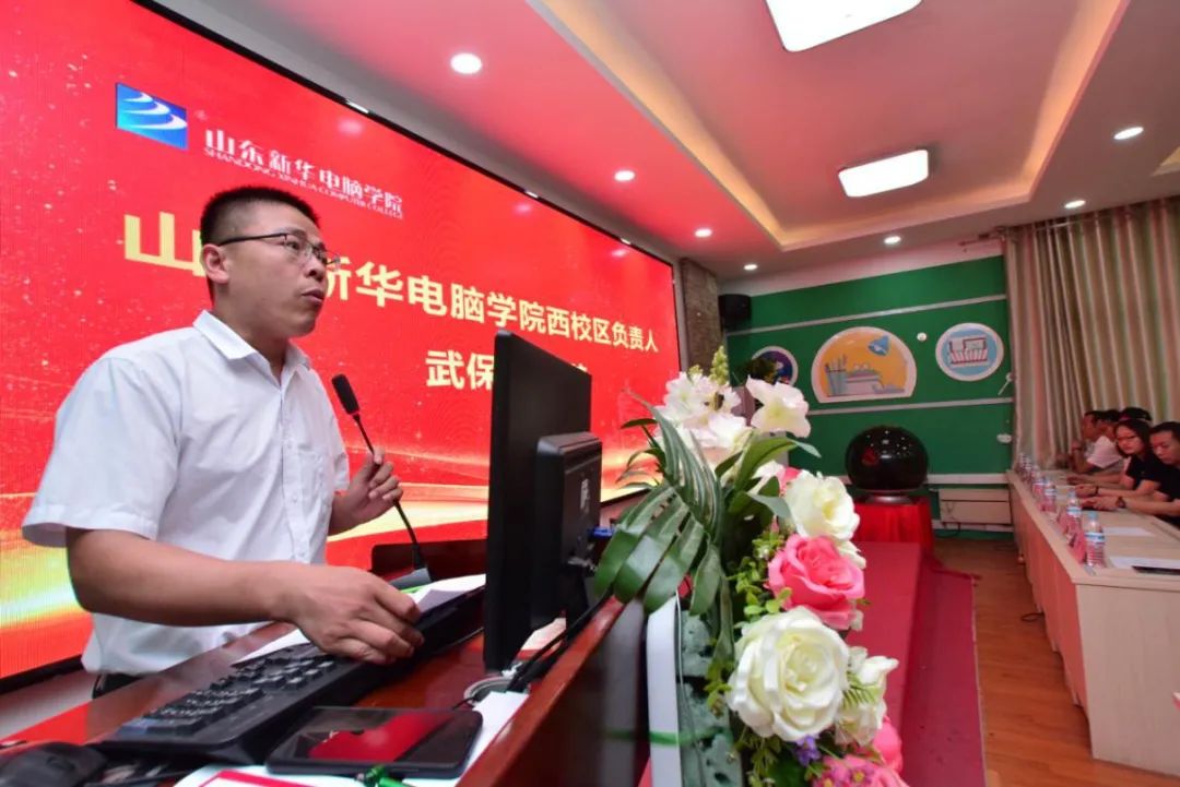 在热烈的掌声中,山东新华西校区负责人武保鹏主任首先致辞:山东新华紧跟时代发展需求,开设全屋定制设计师专业,培养适合市场需求、企业需要的专业人才。校企合作签约仪式充分发挥校企双方的优势,通过合作实现资源共享、优势互补,打造满足社会需求的“教育+培训+就业”合作体系。