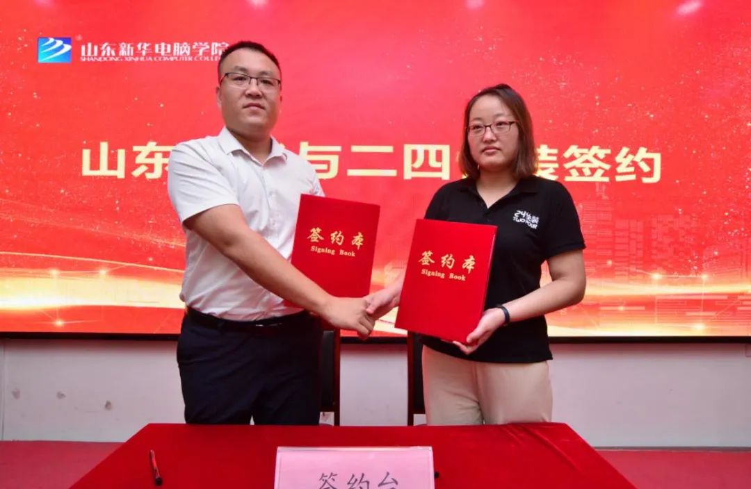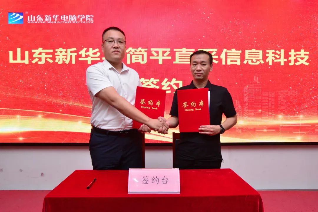 随后,山东新华电脑学院教学负责人范树明主任分别与众博教育科技(山东)有限公司、简平直采信息科技、二四快装、山东瀚华臻品文化传媒有限公司、景致工坊家具制造有限公司等企业签订校企合作协议。校企双方就联合培养实用性技能人才达成一致,并承诺在人才培养上相互配合,从而实现学院、学子及企业的共赢。
