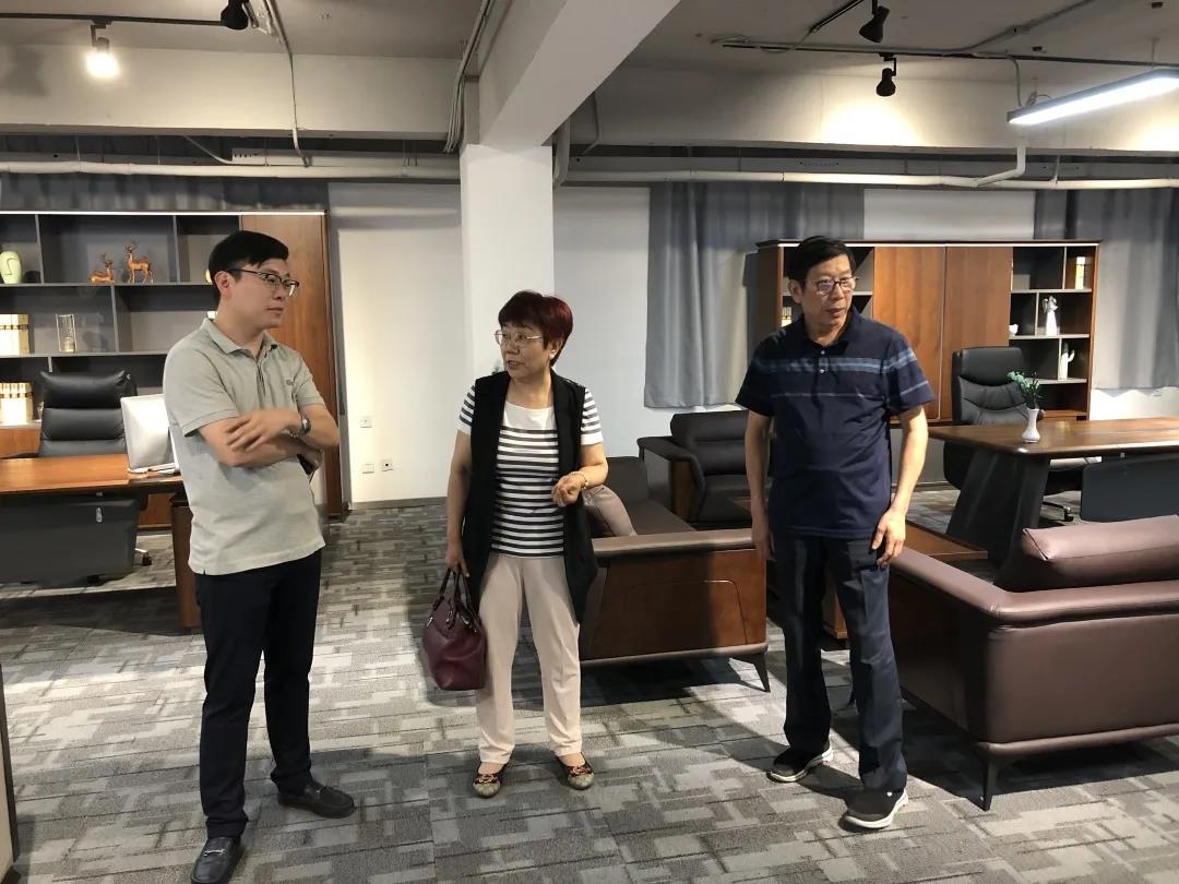 牛广霞会长走进南华家具济南公司及展厅参观,与山东南华家具有限公司严世根董事长、严伟江总经理交流探讨当前办公家具行业形势、流行趋势,深入了解企业的发展现状与未来规划,并就产品设计、经营及品牌打造、渠道开拓等方面提出建设性意见。