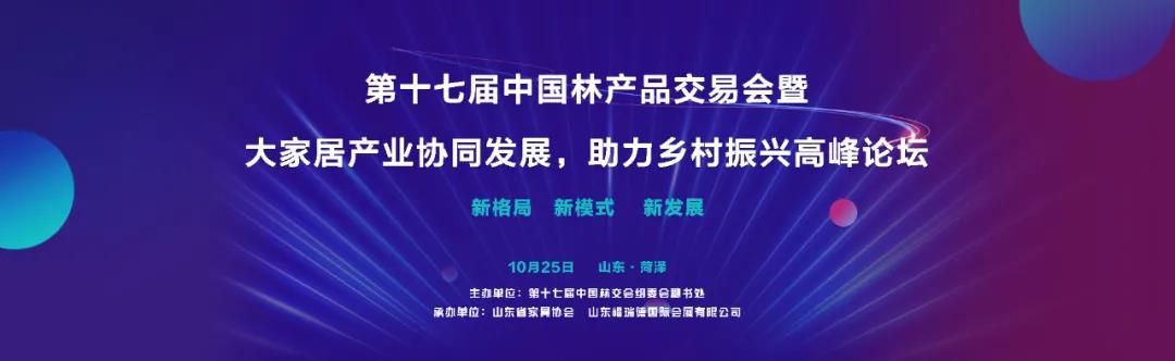 10月25日,第十七届中国林产品交易会暨大家居产业协同发展,助力乡村振兴高峰论坛在菏泽盛大召开,本届论坛由第十七届中国林产品交易会组委会主办,山东省家具协会承办,以“新格局 新模式 新发展”为主题,邀请行业领导专家、产业链实践专家共同探讨大家居产业协同与助力乡村振兴融合发展之路。同期举办第十七届中国林产品交易会,本届展会主会场设在中国林展馆,分会场设在菏泽开发区、定陶区,总展示面积5万平方米,国际标准展位2200个。