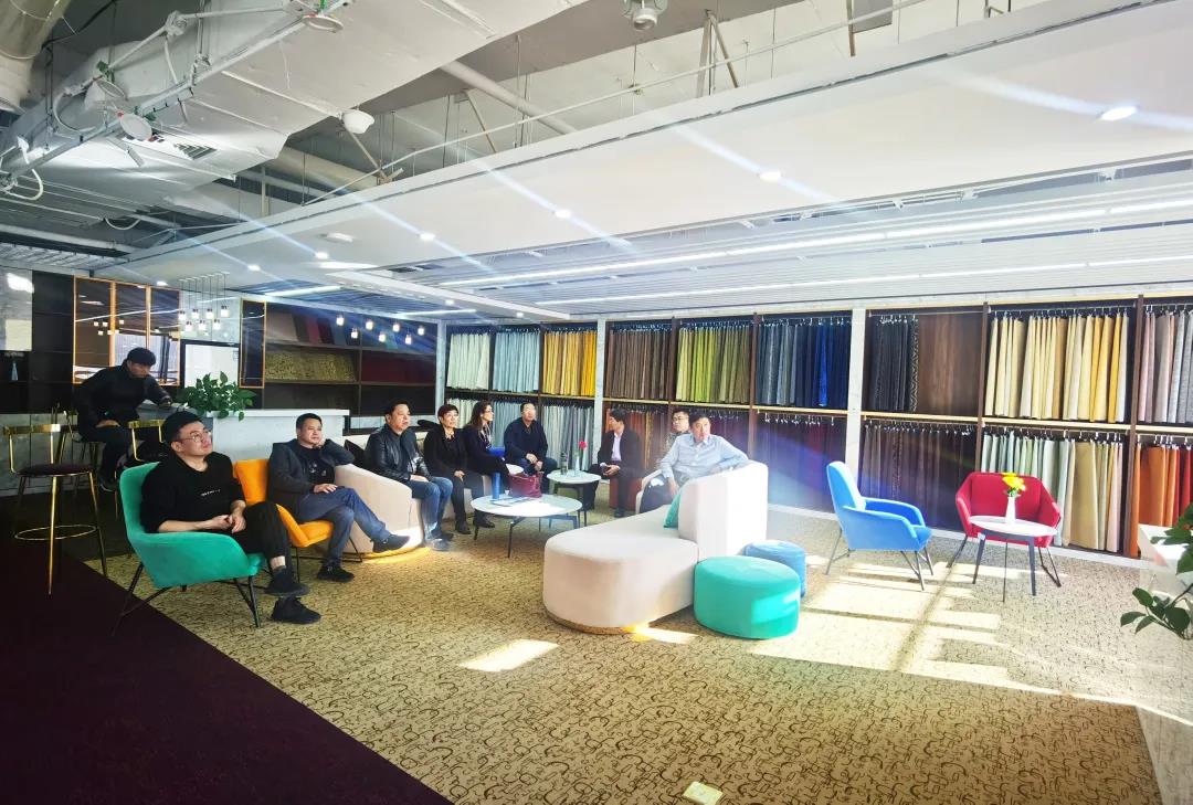 赵丽董事长首先介绍了格林堡绿色建设被动房技术及产业前景、配套需求,领潮植绒面料防火环保抗污等功能特点, 并与牛广霞会长和考察团就被动房内饰配套标准、产品开发和技术提升等合作方向进行深入探讨。双方希望,加强业务合作,努力开拓市场,共同研发探索被动房内饰配套标准、推动新产品研发,为实现“双碳”目标提供满足低碳环保和市场需求的产品和材料。会后,协会一行参观领潮新材料展厅,并观看领潮新材料和格林堡绿色建设技术和产品介绍视频。