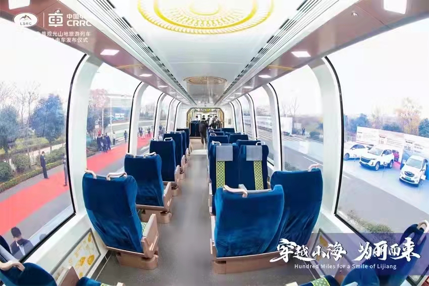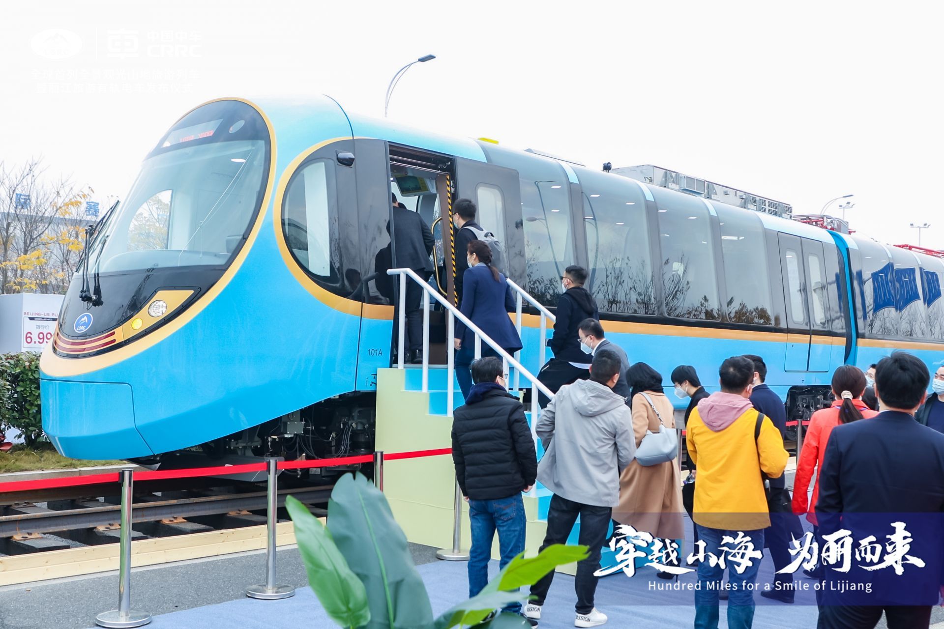 12月8日,为丽江城市综合轨道交通一期工程(1号线)专门“量身定制”的全球首列全景观光山地旅游列车在湖南株洲成功发布。该工程由中国铁建、中国中铁、广州地铁共同投资建设。丽江市委常委、常务副市长杨承新及丽江市文化和旅游局等相关部门、运营企业的负责人等参加发布仪式。