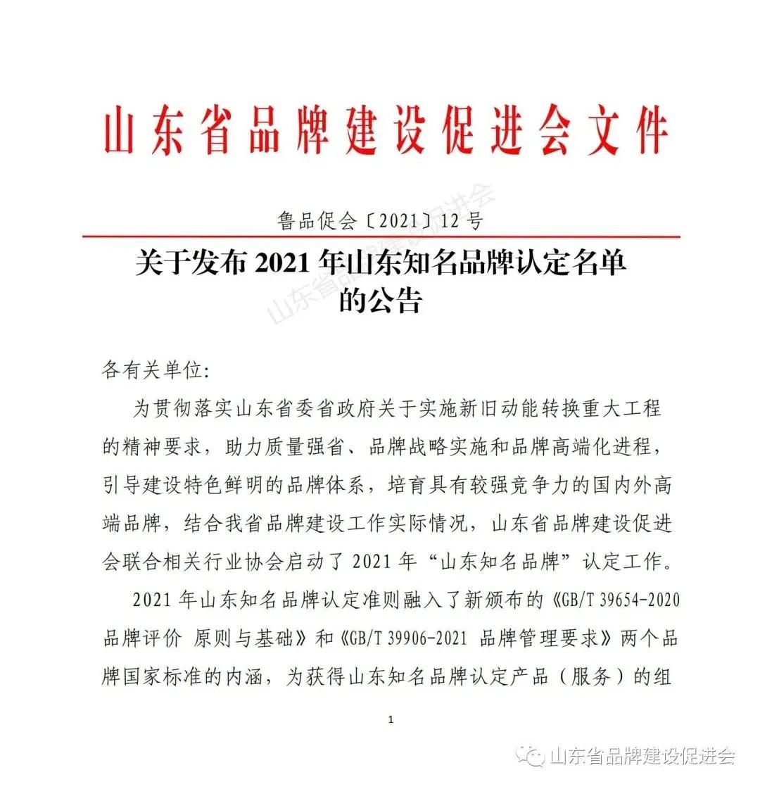 根据《山东知名品牌认定管理办法》的规定,遵循科学、客观、公开、公平、公正的原则,经组织申报、资格审查、大数据信息挖掘、信息化系统平台评审、专家评审、专家委员会审议、认定委员会认定等工作程序,认定烟台吉斯家具集团有限公司、山东福王家具有限公司、济南品脉数控设备有限公司、尚品本色智能家居有限公司、泰森日盛集团有限公司等558家组织申报的600个产品(服务)项目,获得2021年山东知名品牌认定资格。