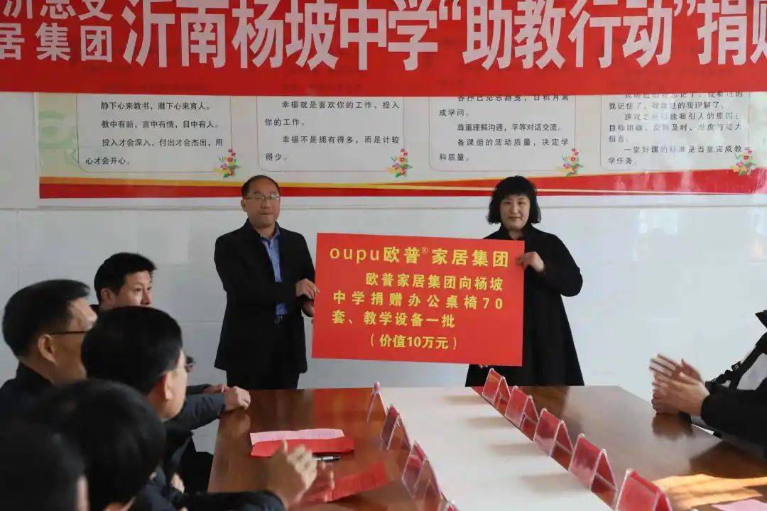 冬日暖阳,情系杨坡。今天在迎来2022年的光辉时刻,欧普助教圆梦沂南县杨坡中学办公桌椅爱心捐赠仪式在这里隆重举行。