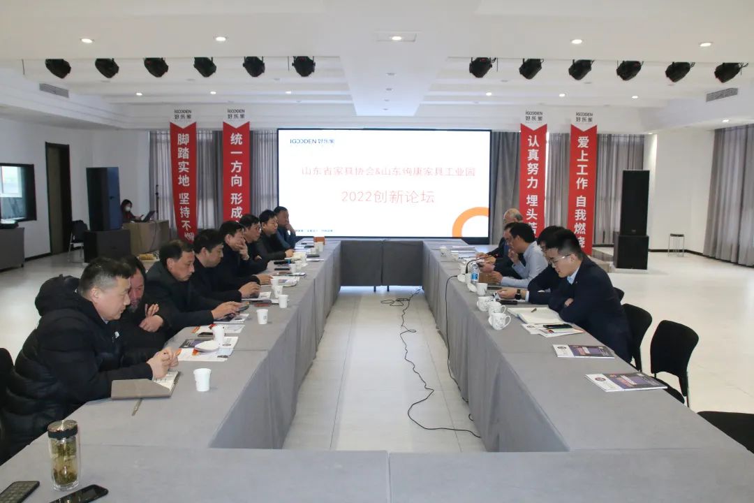 2022年2月24日,山东省家具协会一行走访考察了山东绚康家具工业园并召开座谈会。山东省家具协会副会长/秘书长韩庆生、济南农商银行天桥区桑梓店支行行长王迅、山东博世磨具实业有限公司技术经理郭东/营销经理陈英俊、黄台环球家居博览中心董事长魏光进/总经理王磊以及山东绚康家具工业园企业代表山东好乐家住宅设施有限公司、山东南华家具有限公司、山东欧驰家具有限公司、禹城福润德木业有限公司、山东天利达家具有限公司、山东欧丽家居有限公司、山东庄氏红鹰家具制造有限公司、山东财富办公家具有限公司等参加了座谈会。