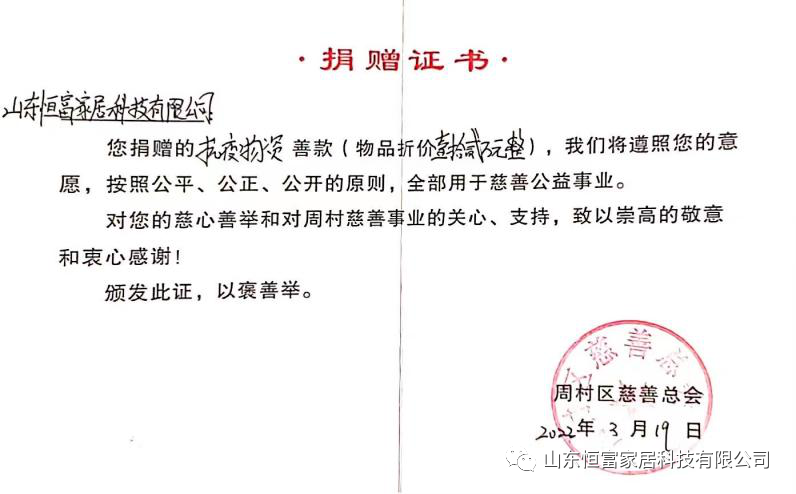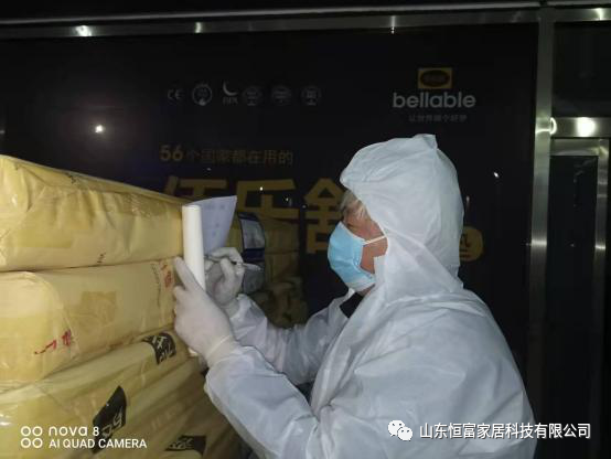 董事长刘长江说到:“疫情无情,人间有爱,封城封路、交通中断,任何困难也阻挡不住恒富家居及佰乐舒热爱周村的情感,哪怕遇到再大的困境,我也会想尽一切办法,为抗疫事业做出应有贡献!”在董事长的号召和感悟下,全体闭环人员自发加班加点赶制床垫,晚上再晚再累也要加班送到,尽全力早点让一线抗疫和值班人员睡个好觉。为早日结束这场没有硝烟战争,做出应有贡献。